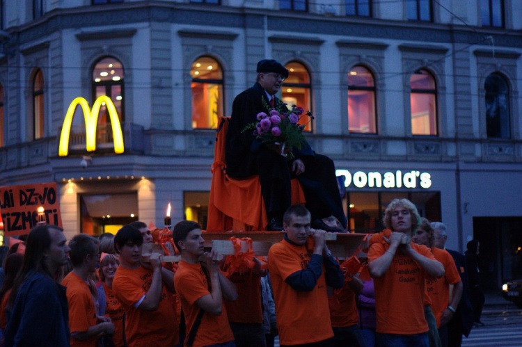 McDonalds arī kadrā ticis. Starp citu, ievērojāt cik priecīgas sejas nesējiem bija Doma laukumā :D :D